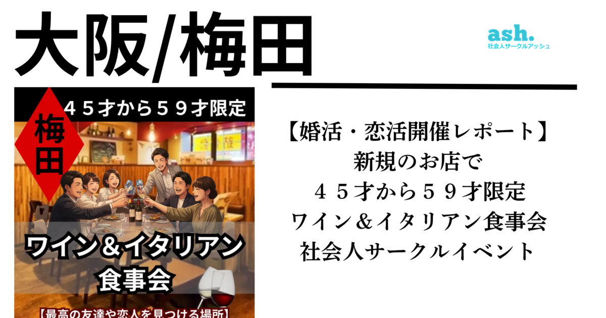 梅田|【婚活・恋活開催レポート】45才から59才限定・ワイン&イタリアン食事会